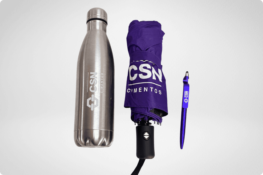 essa maneira, ao selecionar itens como um guarda-chuva, uma garrafa térmica e uma caneta multifuncional, a CSN Cimentos não está apenas distribuindo brindes; pelo contrário, ela está equipando seu público com ferramentas essenciais de trabalho e bem-estar.