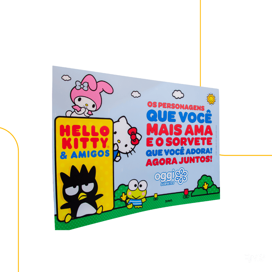 A estratégia de co-branding pode criar um resultado exponencial. Para isso, ela une duas marcas fortes. A campanha da Oggi com a Hello Kitty & Amigos é, sem dúvida, um exemplo clássico.