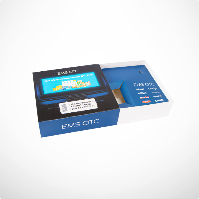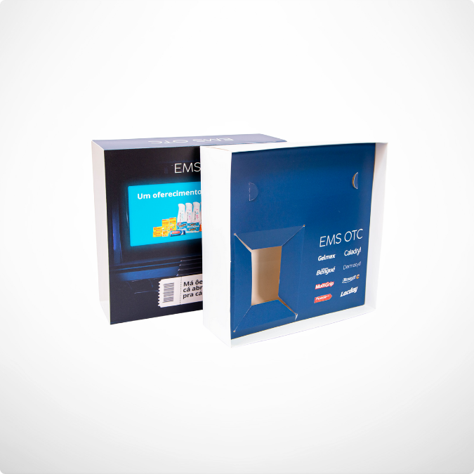 Por isso, nossa equipe dedicou esforços significativos para desenvolver um projeto que unisse segurança, estética e funcionalidade para a EMS, líder incontestável do segmento. Nesse contexto, o desafio consistia em criar uma estrutura que protegesse o medicamento e, simultaneamente, comunicasse valor e confiança.