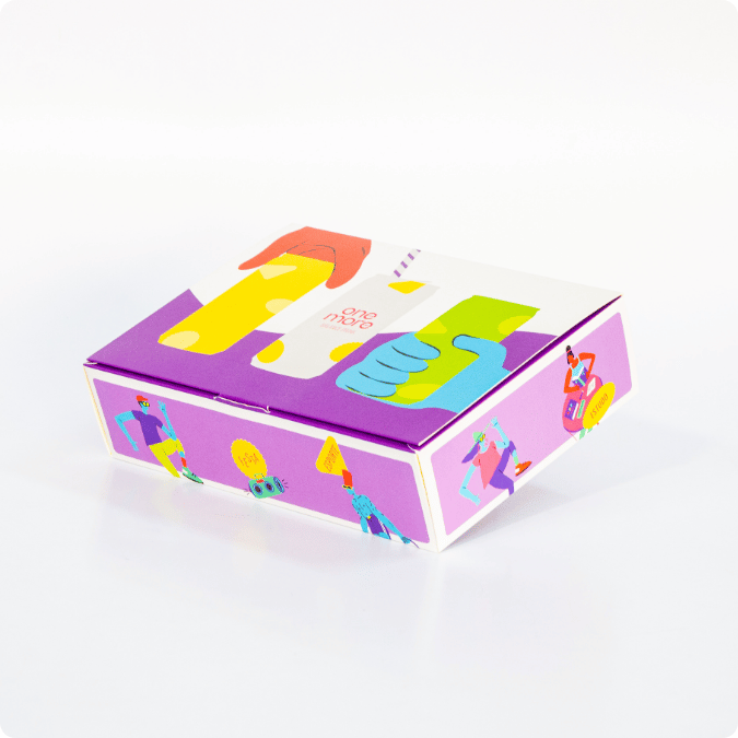 A RM2 Holding entende que cada projeto é único. No caso da One More, a personalização foi total, desde o formato da faca até a impressão interna (no verso da tampa), uma técnica que agrega muito valor ao produto, pois aproveita todos os espaços da embalagem para comunicar os benefícios da bebida.