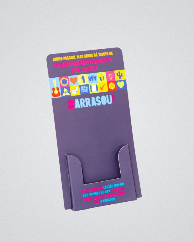 Em contrapartida, se o vendedor simplesmente entregar o panfleto diretamente na mão da pessoa, muitas vezes o cliente recusa por instinto de defesa. Logo, o ato voluntário de retirar o papel do Display papel gera uma conexão muito mais receptiva e genuína com a mensagem que a sua marca deseja transmitir.