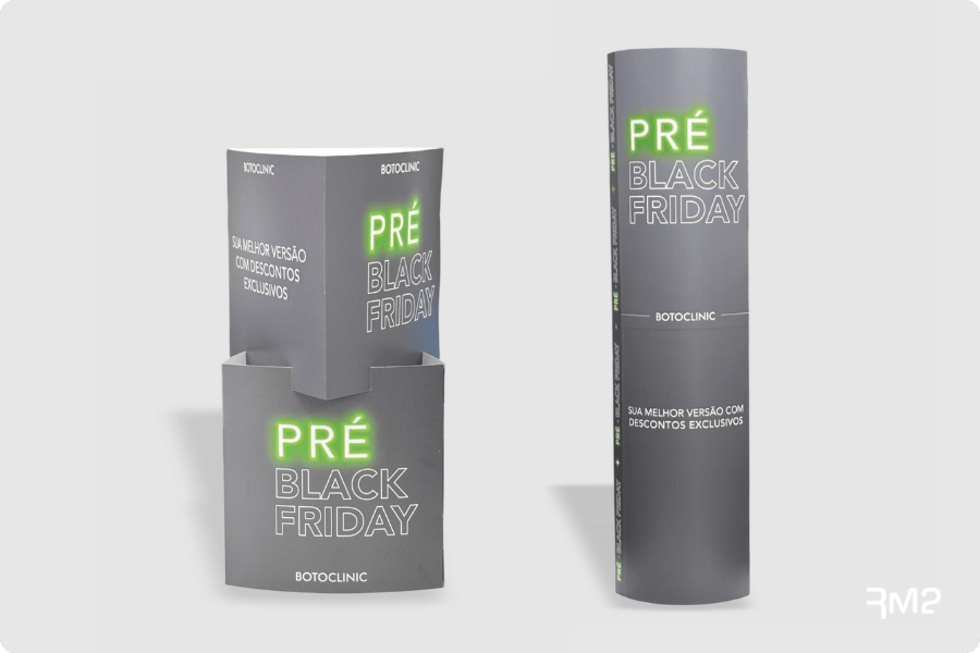 Na RM2 Holding, entendemos que a engenharia de papel e o design estrutural não são apenas suportes para tinta; são ferramentas ativas de vendas. Recentemente, desenvolvemos um conjunto de peças para a BotoClinic — um Totem Elíptico e um Triedro — que exemplificam com perfeição como unir design clean, estrutura robusta e facilidade logística para maximizar resultados. Neste artigo, vamos explorar a fundo por que esses formatos são essenciais para uma estratégia de comunicação visual para PDV vencedora.