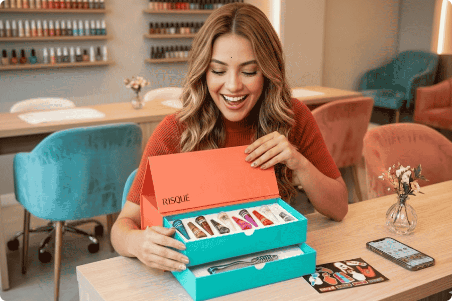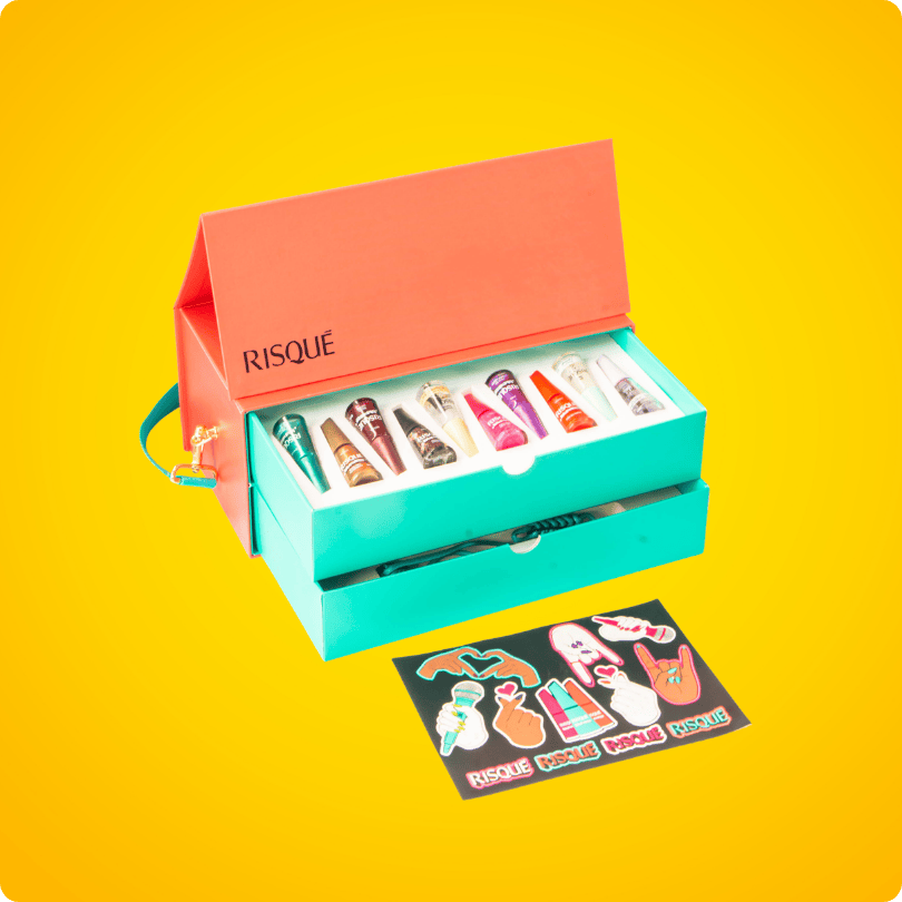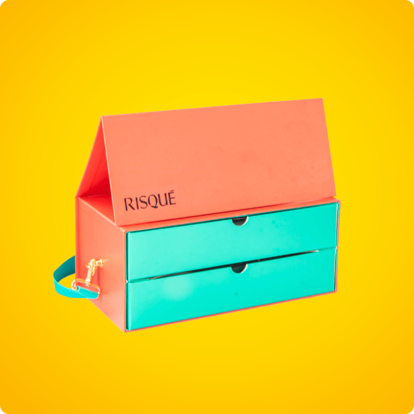 A RM2 Holding atua como uma indústria gráfica especialista nesse segmento e, consequentemente, transforma projetos desafiadores em verdadeiras obras de arte tridimensionais. Criamos soluções físicas que conectam a Risqué diretamente ao coração do seu público-alvo, garantindo um resultado visual impecável.
